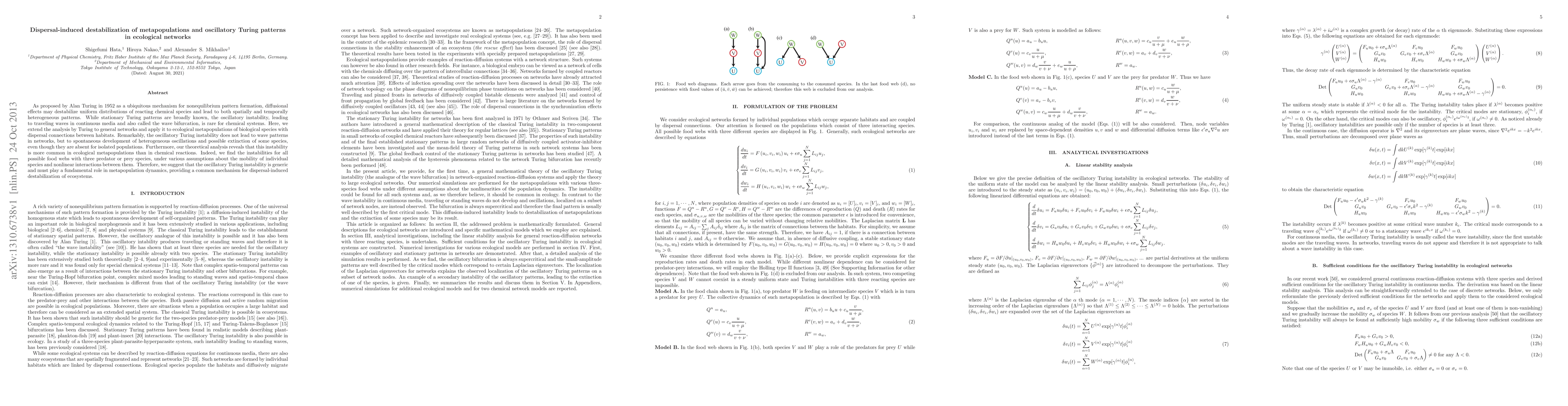 This paper explores how dispersal in ecological metapopulations can lead to oscillatory Turing instability, resulting in heterogeneous oscillations and potential species extinction, unlike the wave patterns seen in chemical systems. The authors find this instability to be common across various ecological networks, suggesting it plays a fundamental role in metapopulation dynamics.