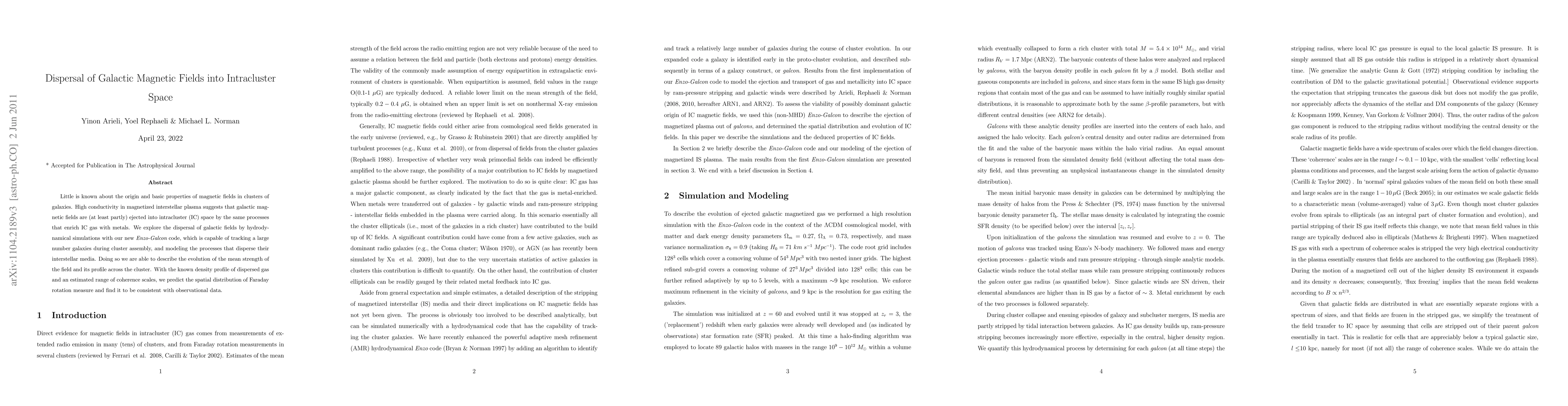 Researchers used computer simulations to study how galactic magnetic fields spread into galaxy clusters, finding consistent results with observational data that support the idea of field dispersal through gas enrichment processes.