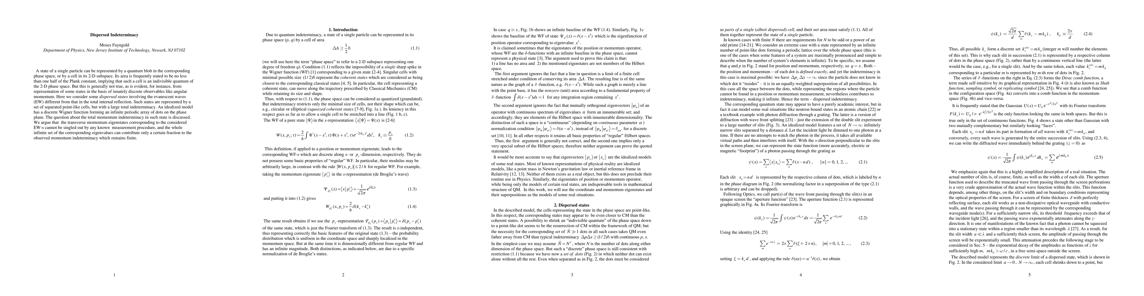 This paper explores quantum states represented by dispersed point-like cells in phase space, challenging the notion of indivisible quantum cells. It discusses evanescent wave states with large total indeterminacy, arguing that their transverse momentum eigenstates cannot be isolated by measurement, leading to a finite observed momentum indeterminacy.