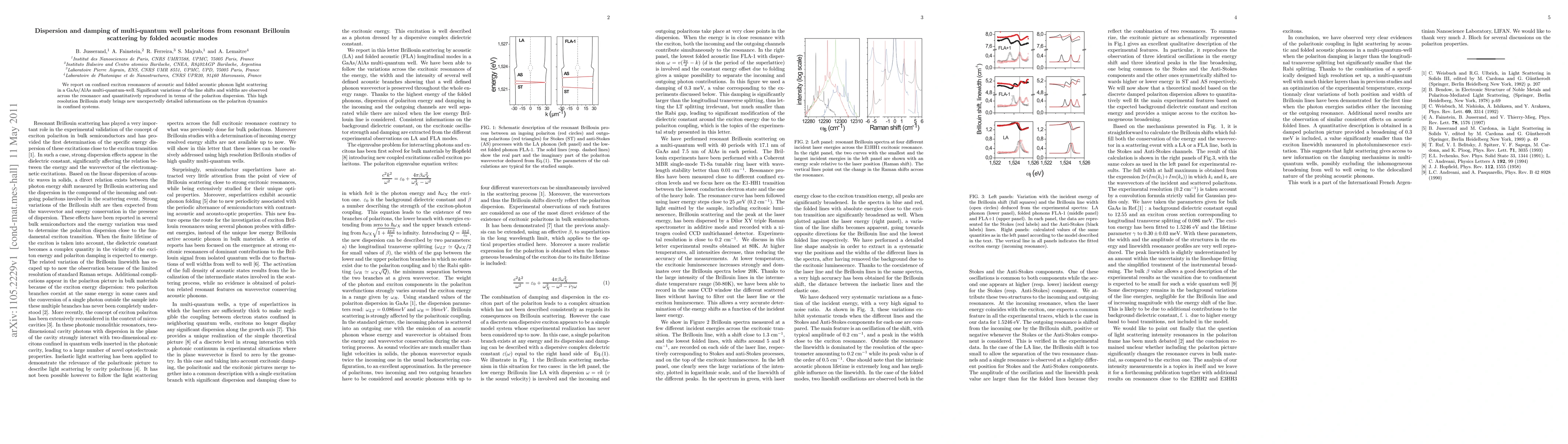 This study investigates the dispersion and damping of multi-quantum well polaritons using resonant Brillouin scattering, revealing significant variations in line shifts and widths due to acoustic and folded acoustic phonon interactions in GaAs/AlAs systems. The high-resolution Brillouin scattering provides detailed insights into polariton dynamics in confined environments.