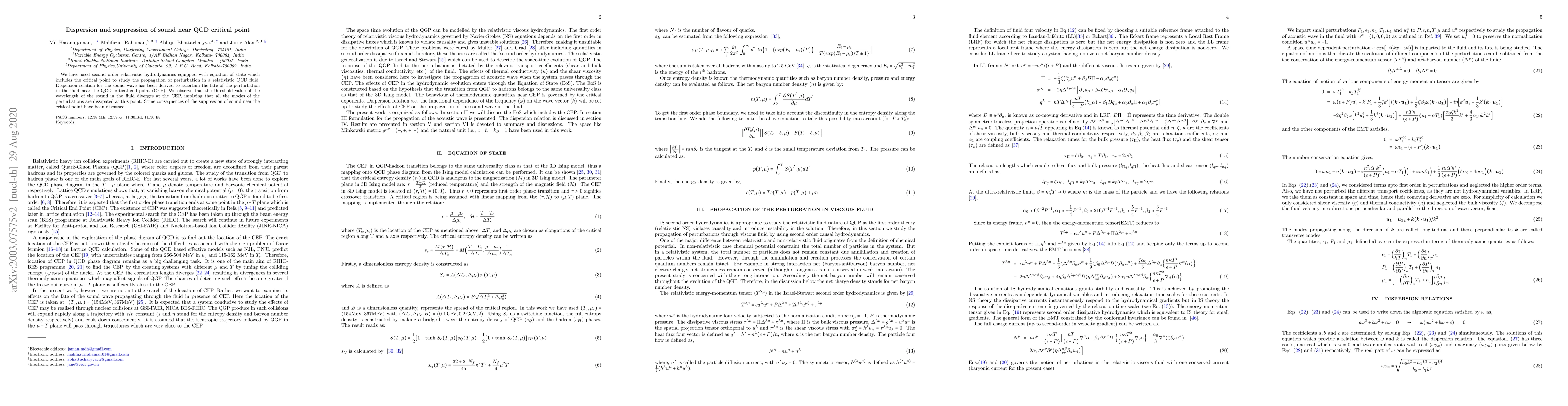 We have used second order relativistic hydrodynamics equipped with equation of state which includes the critical point to study the propagation of perturbation in a relativistic QCD fluid. Dispersion relation for the sound wave has been derived to ascertain the fate of the perturbation in the fluid near the QCD critical end point (CEP). We observe that the threshold value of the wavelength of the sound in the fluid diverges at the CEP, implying that all the modes of the perturbations are dissipated at this point. Some consequences of the suppression of sound near the critical point have been discussed.