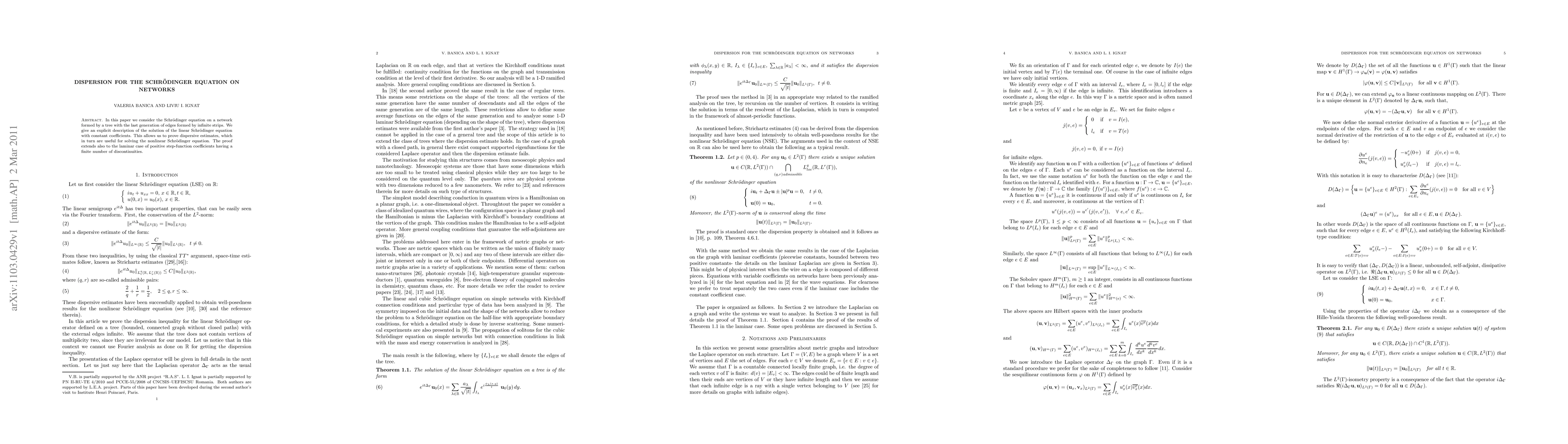 This paper provides an explicit solution for the linear Schrödinger equation on a network formed by a tree with infinite strip edges, proving dispersive estimates that aid in solving the nonlinear Schrödinger equation. The proof also applies to the laminar case with positive step-function coefficients featuring a finite number of discontinuities.