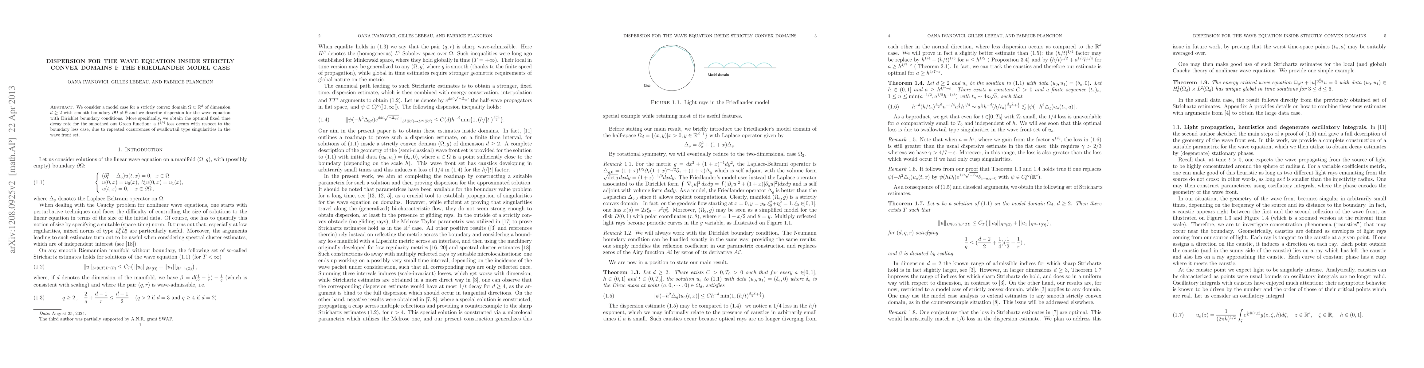 We consider a model case for a strictly convex domain of dimension $d\geq 2$ with smooth boundary and we describe dispersion for the wave equation with Dirichlet boundary conditions. More specifically, we obtain the optimal fixed time decay rate for the smoothed out Green function: a $t^{1/4}$ loss occurs with respect to the boundary less case, due to repeated occurrences of swallowtail type singularities in the wave front set.