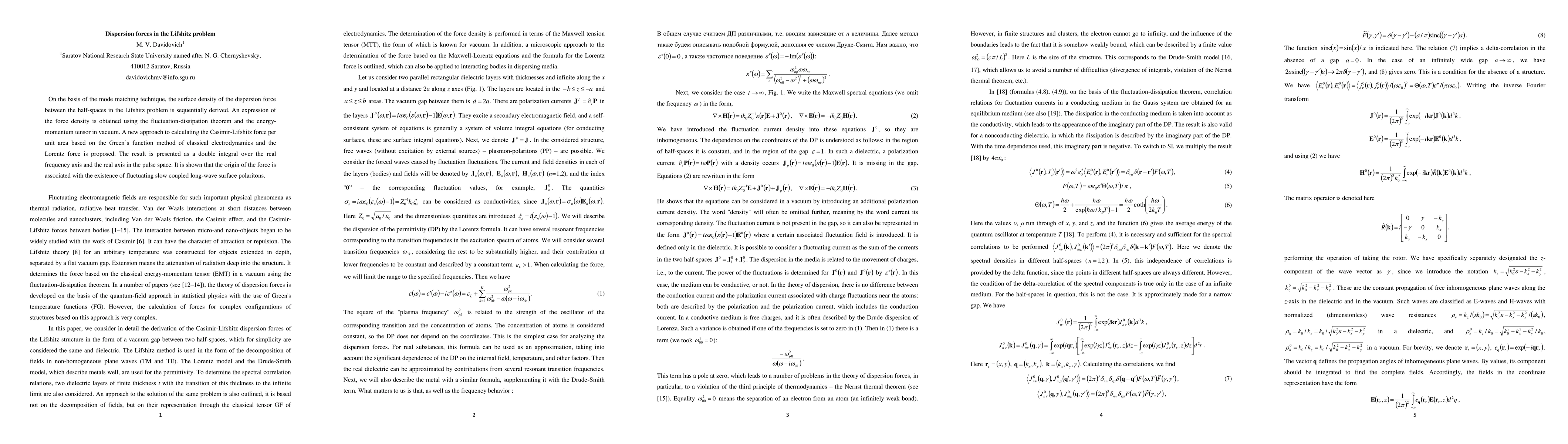 Summary: This paper derives dispersion forces in the Lifshitz problem using field mode matching, presenting results as spectral integrals in the real domain based on the energy-momentum tensor and Lorentz force. The methodology focuses on sequential derivations.