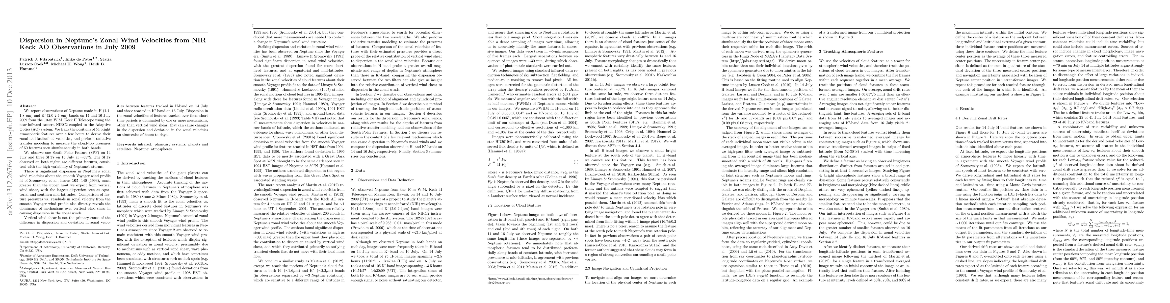 This study uses NIR Keck AO observations to track 54 bright atmospheric features on Neptune, revealing significant dispersion in zonal wind velocities beyond the expected vertical wind shear. The findings suggest that mechanisms other than vertical wind shear are primarily responsible for the observed wind variability.