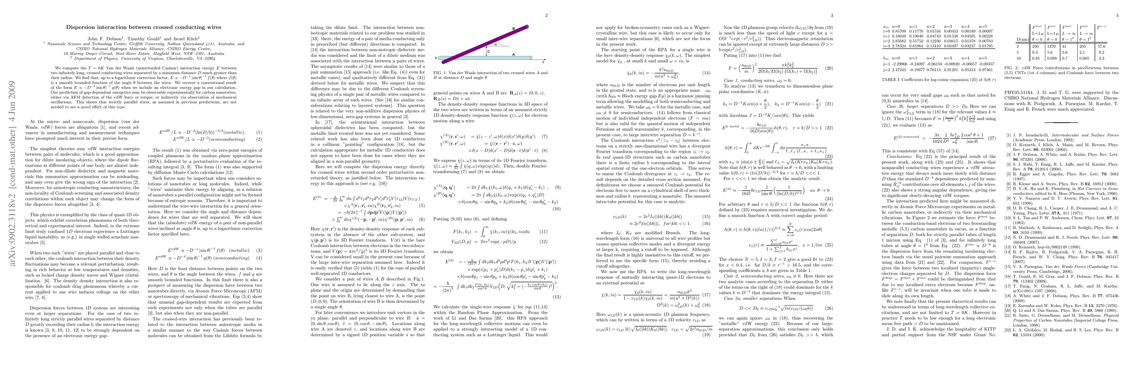 Researchers found that the Van der Waals interaction energy between two crossed conducting wires decreases with distance in a way that depends on the angle between them, offering a new effect not previously predicted for strictly parallel wires.