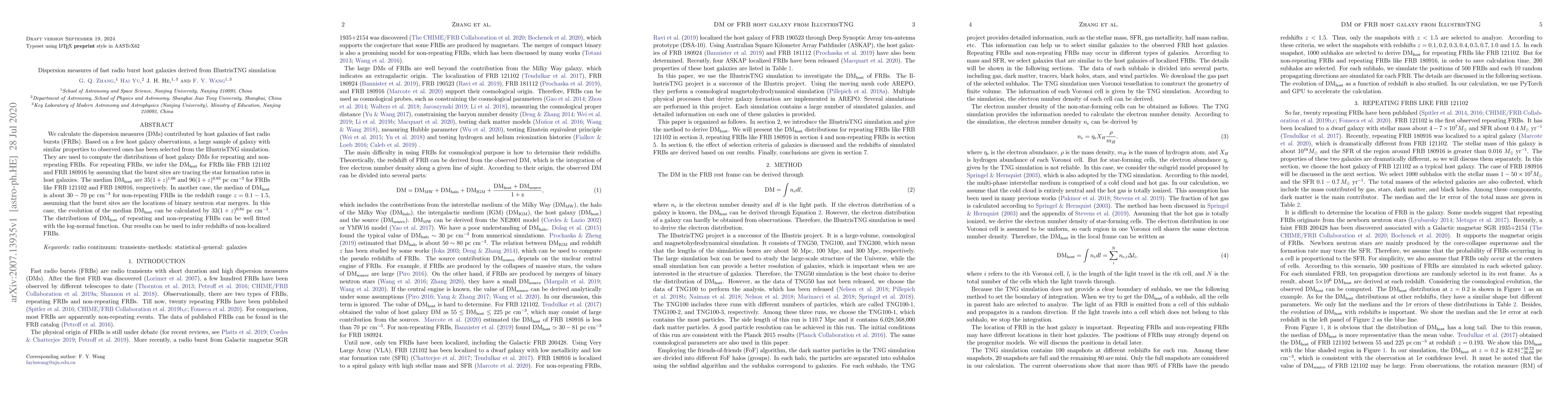 The research utilizes the IllustrisTNG simulation to derive the distribution of dispersion measures (DMs) contributed by host galaxies of fast radio bursts (FRBs). Galaxies are selected based on their stellar mass and star formation rate (SFR), mimicking observed FRB host galaxies.