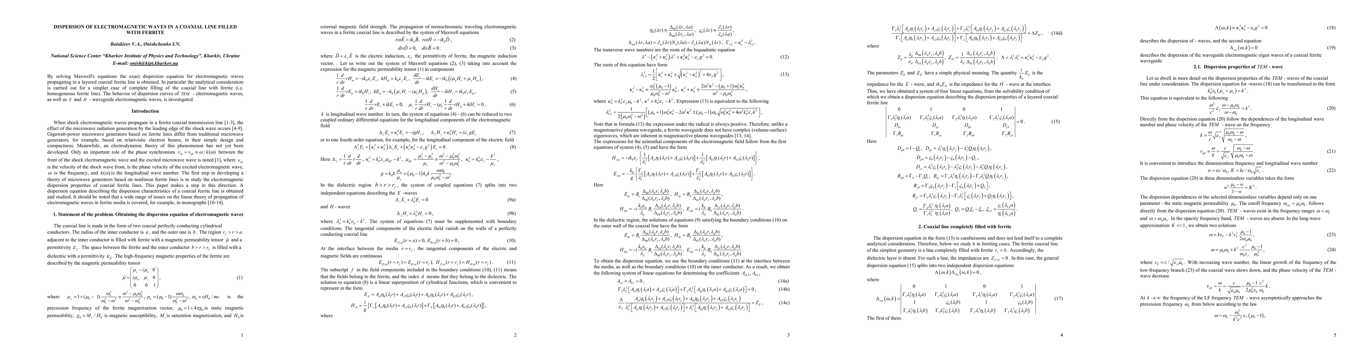 Researchers solved Maxwell's equations to find the exact dispersion equation for electromagnetic waves in a ferrite-filled coaxial line, revealing new insights into TEM wave behavior.