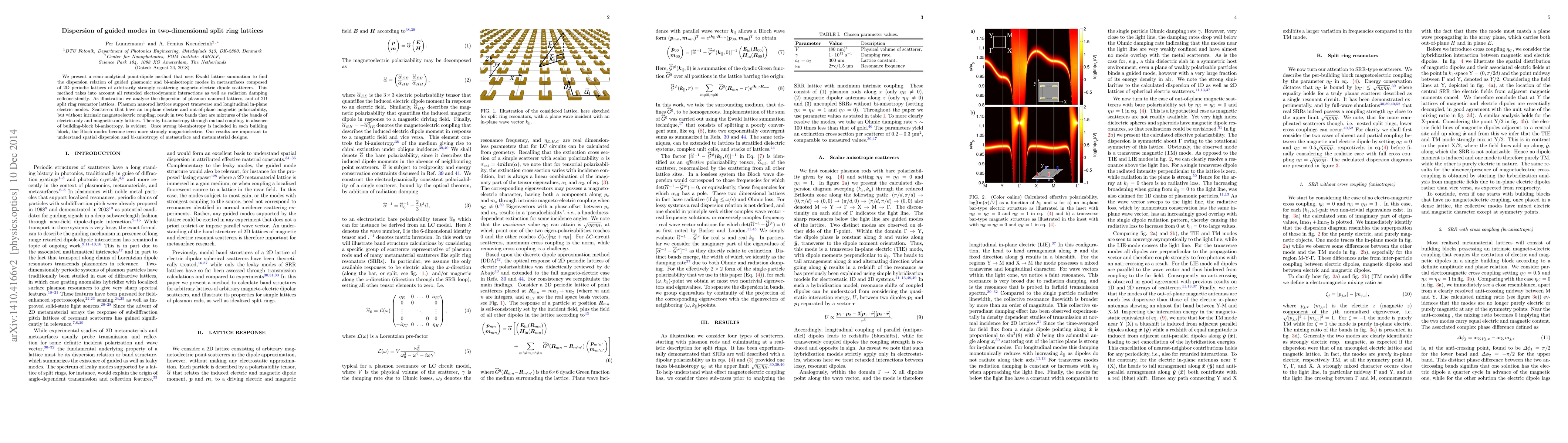 This paper introduces a semi-analytical method to determine the dispersion relations of guided modes in 2D split ring lattices, considering both plasmonic and bianisotropic effects. The method reveals the impact of bianisotropy on the lattice modes, highlighting the importance of mutual coupling in metasurface designs.