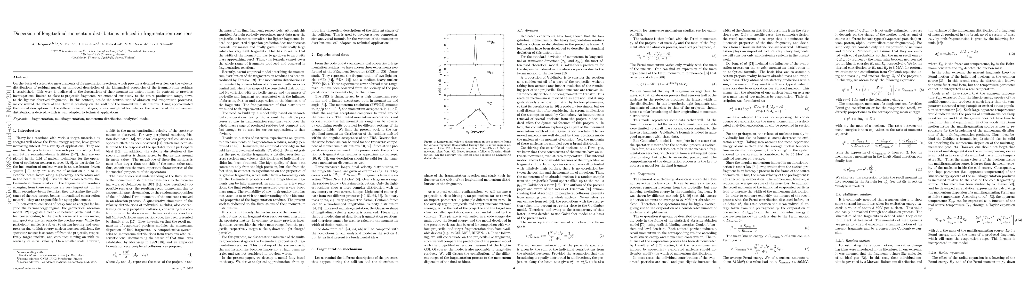 This paper investigates the dispersion of longitudinal momentum distributions in fragmentation reactions across the entire production range, including the lightest fragments, and considers the effects of abrasion, evaporation, and thermal break-up. A new analytical formula for the variance of momentum distributions is derived, offering improved kinematical descriptions and practical applications.
