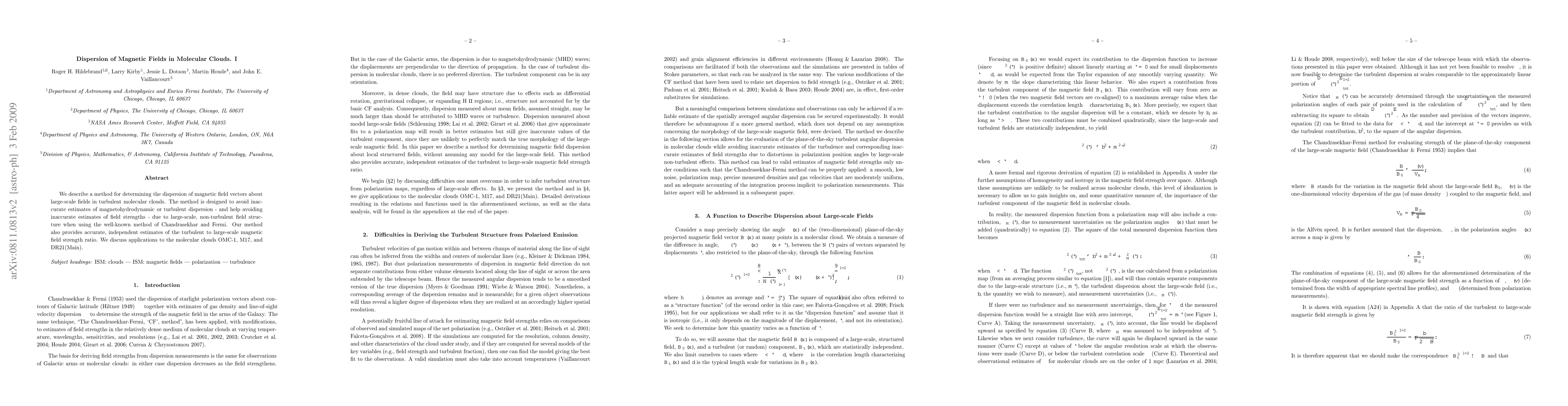 We describe a method for determining the dispersion of magnetic field vectors about large-scale fields in turbulent molecular clouds. The method is designed to avoid inaccurate estimates of magnetohydrodynamic or turbulent dispersion - and help avoiding inaccurate estimates of field strengths - due to large-scale, non-turbulent field structure when using the well-known method of Chandrasekhar and Fermi. Our method also provides accurate, independent estimates of the turbulent to large-scale magnetic field strength ratio. We discuss applications to the molecular clouds OMC-1, M17, and DR21(Main).