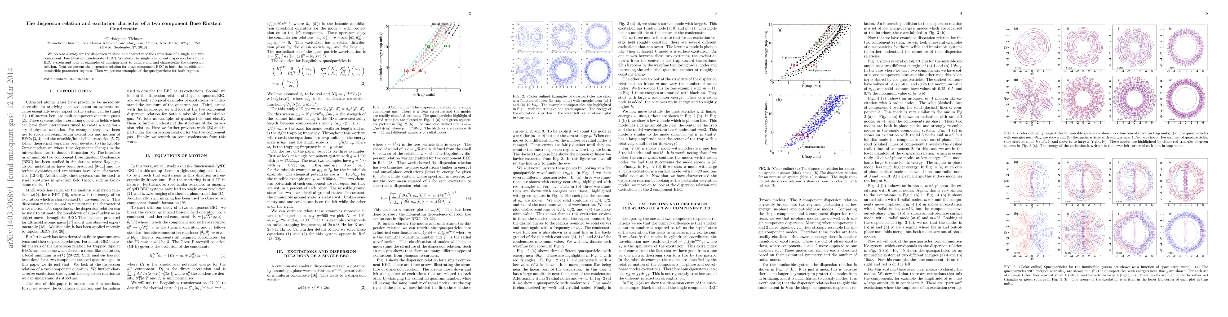 Researchers studied the dispersion relation and excitation characteristics of single and two-component Bose-Einstein condensates in both miscible and immiscible parameter regimes.