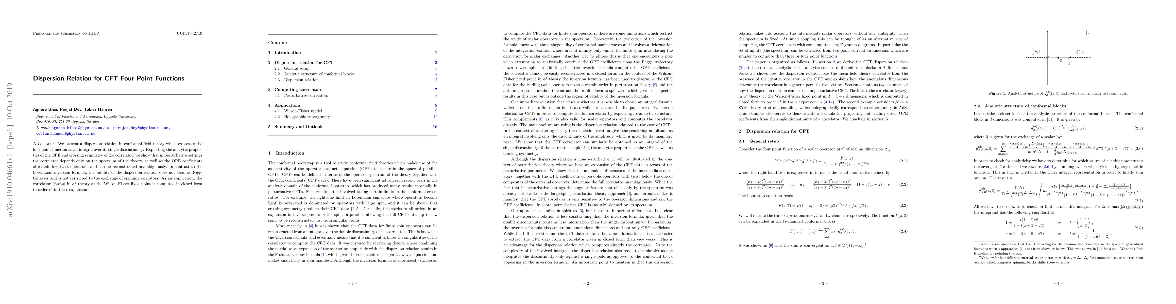 This paper introduces a dispersion relation for conformal field theory four-point functions, showing that they can be reconstructed from the theory's spectrum and OPE coefficients without assuming Regge behavior. The method is applied to compute the $\langle \phi \phi \phi \phi \rangle$ correlator in $\phi^4$ theory at the Wilson-Fisher fixed point to order $\epsilon^2$.