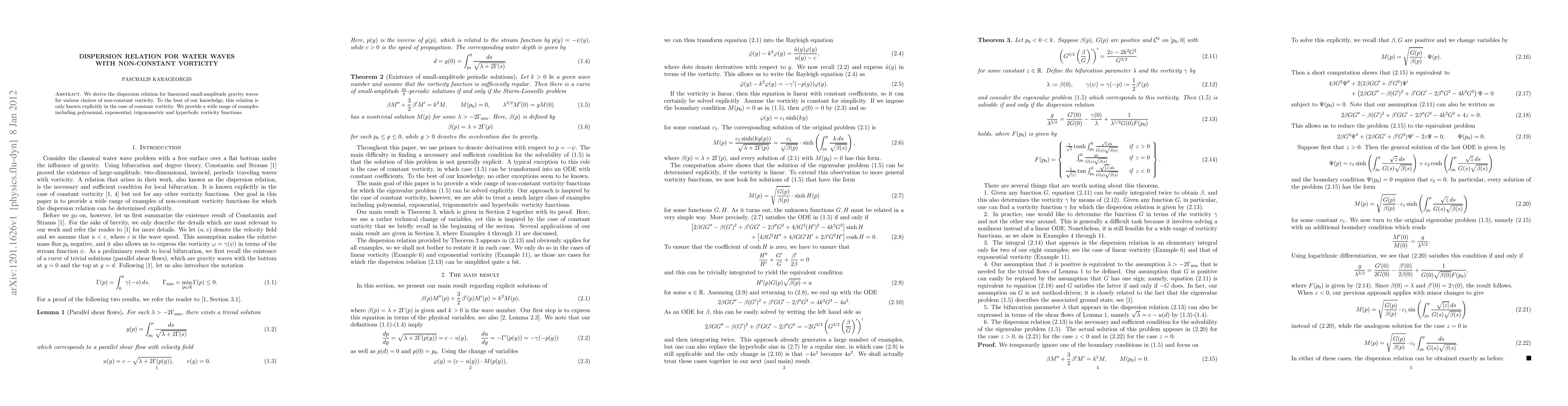 Researchers derive a new dispersion relation for water waves with non-constant vorticity, expanding on existing knowledge in this area.