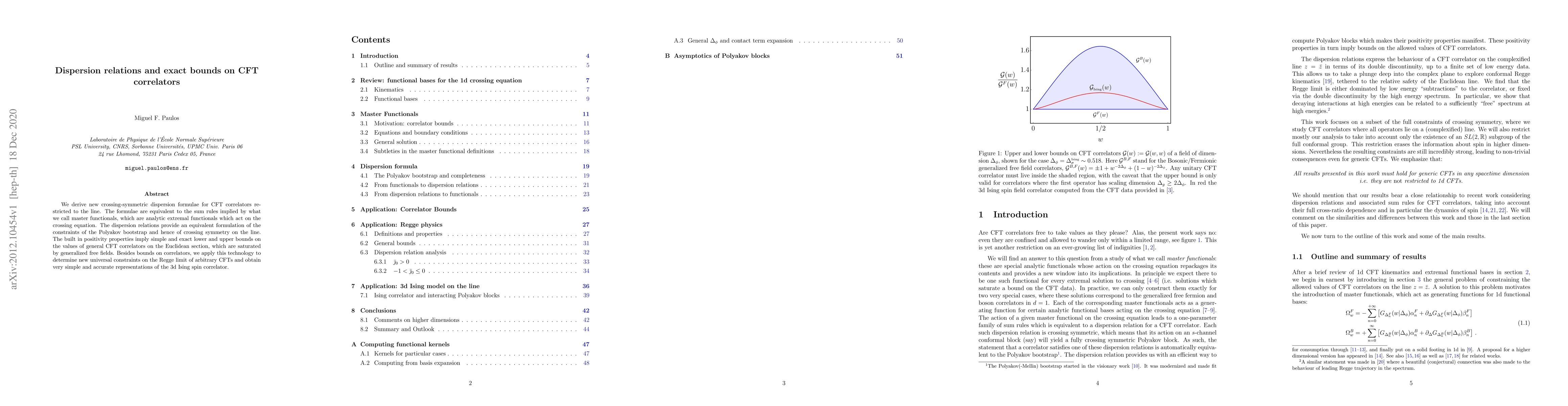 This paper derives new crossing-symmetric dispersion relations for Conformal Field Theory (CFT) correlators on the line, equivalent to sum rules derived from master functionals. These relations provide exact bounds on correlator values and reveal new universal constraints on the Regge limit of CFTs, exemplified by a simple representation of the 3d Ising spin correlator.