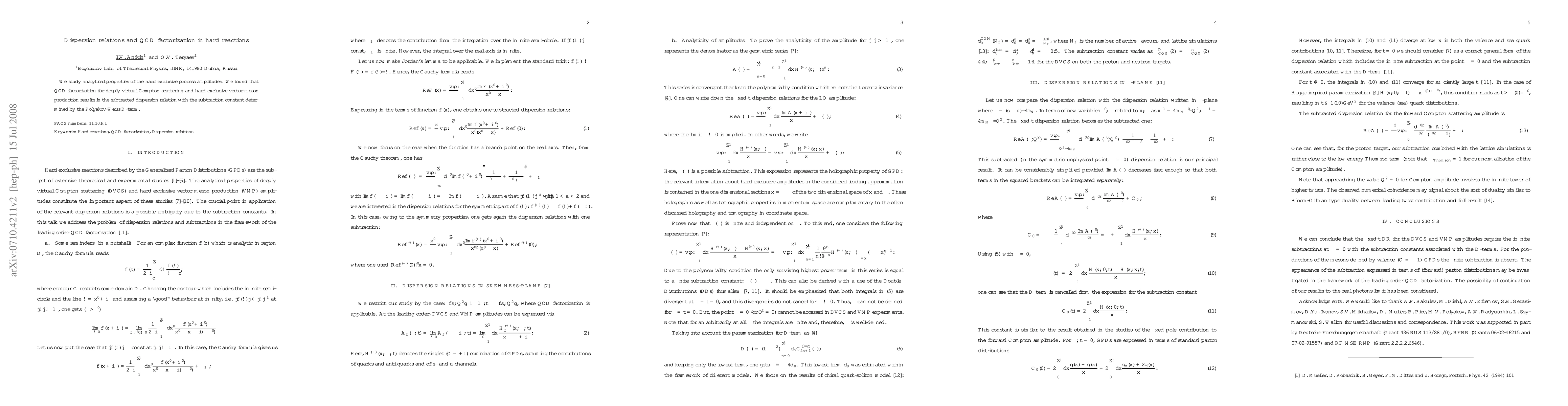 Summary: This paper investigates the analytical properties of hard exclusive process amplitudes, revealing that QCD factorization leads to a subtracted dispersion relation for deeply virtual Compton scattering and hard exclusive vector meson production, with the subtraction constant linked to the Polyakov-Weiss $D$-term.