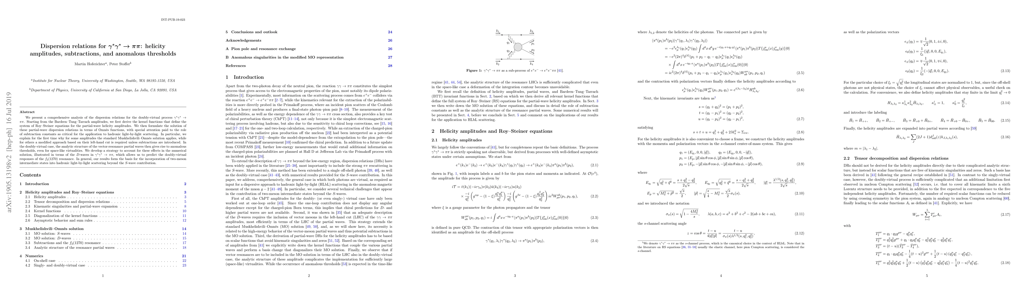 This paper presents a detailed analysis of dispersion relations for the doubly-virtual process $\gamma^*\gamma^*\to\pi\pi$, deriving kernel functions for Roy-Steiner equations and discussing the role of subtraction constants. It also explores anomalous thresholds in vector-resonance partial waves and provides a strategy for their numerical treatment, predicting the $f_2(1270)$ resonance's response.