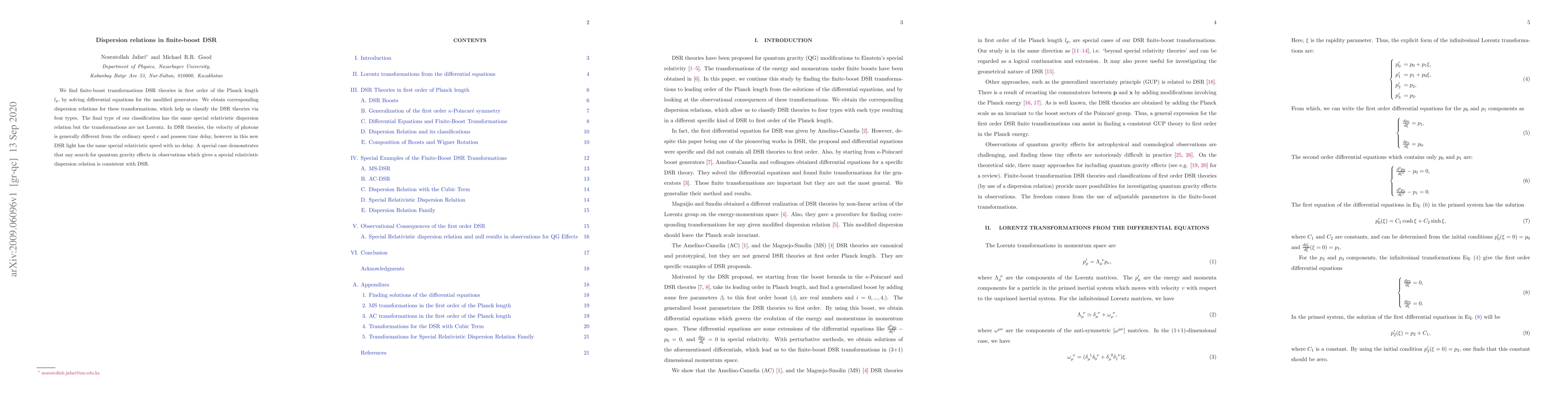 This paper develops finite-boost transformations in Doubling Space-time Relativity (DSR) theories to first order in Planck length, deriving corresponding dispersion relations that classify DSR theories into four types. Notably, one type retains the special relativistic dispersion relation without Lorentz transformations, resolving discrepancies in photon velocity and time delay.