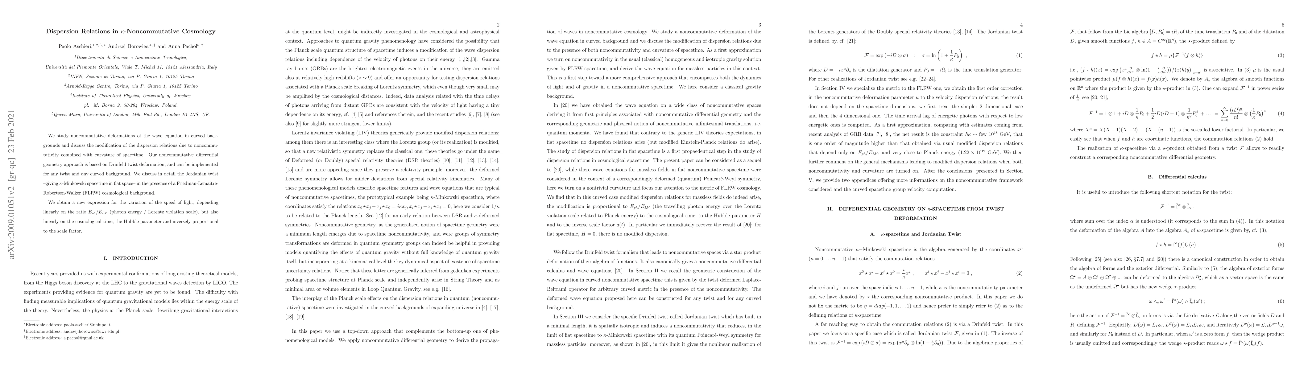 This paper investigates noncommutative deformations of wave equations in curved spacetimes, focusing on the Jordanian twist to derive $\kappa$-Minkowski spacetime. It reveals a modified dispersion relation that varies with photon energy, cosmological time, Hubble parameter, and scale factor.