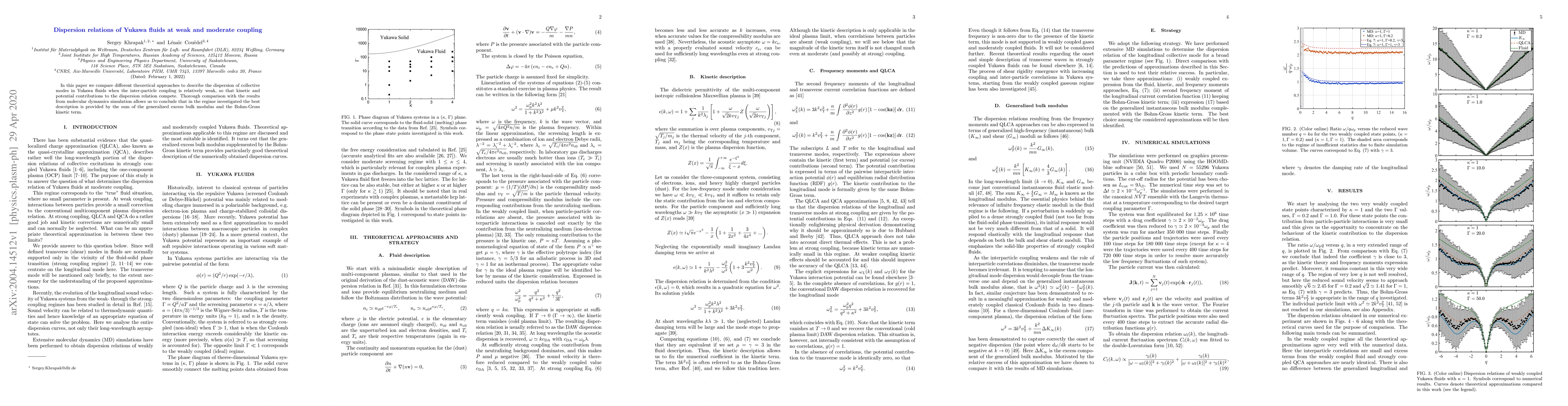 This paper evaluates various theoretical models for the dispersion relations of Yukawa fluids under weak coupling, comparing them against molecular dynamics simulations. The study concludes that the best fit is achieved by combining the generalized excess bulk modulus and the Bohm-Gross kinetic term.