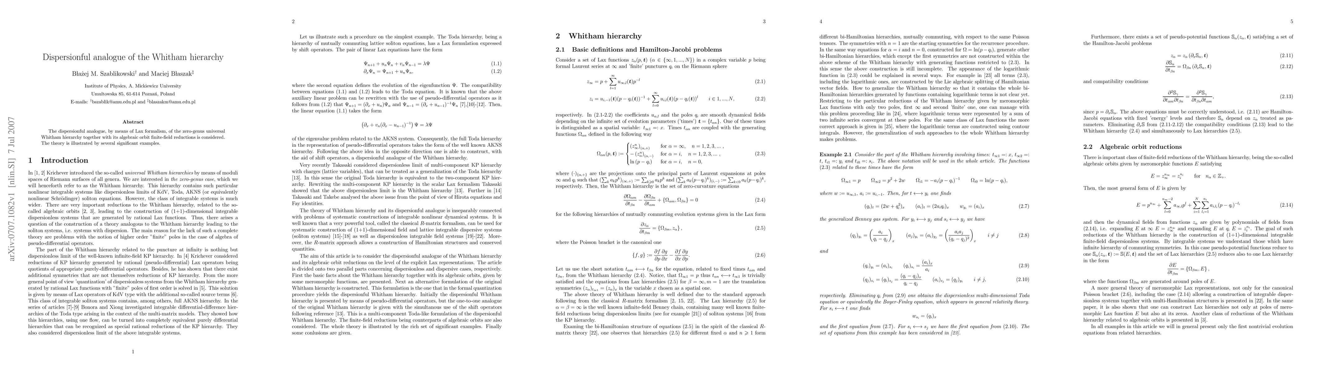The dispersionful analogue, by means of Lax formalism, of the zero-genus universal Whitham hierarchy together with its algebraic orbit finite-field reductions is considered. The theory is illustrated by several significant examples.
