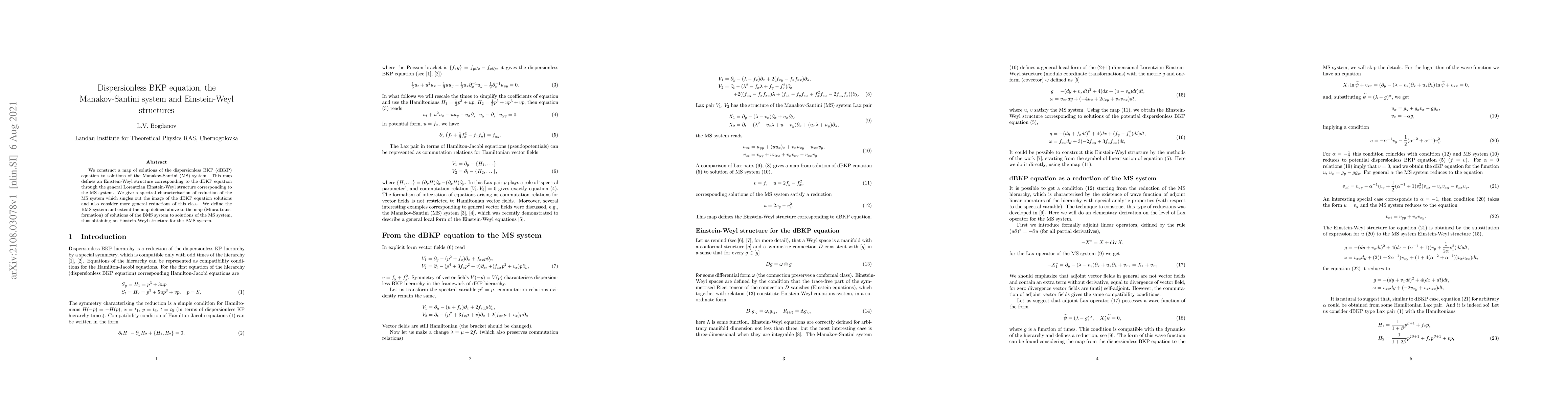 This paper constructs a solution map from the dispersionless BKP equation to the Manakov-Santini system, establishing an Einstein-Weyl structure for the former via the latter. It also introduces the BMS system and extends the solution map to it, providing an Einstein-Weyl structure for the BMS system.