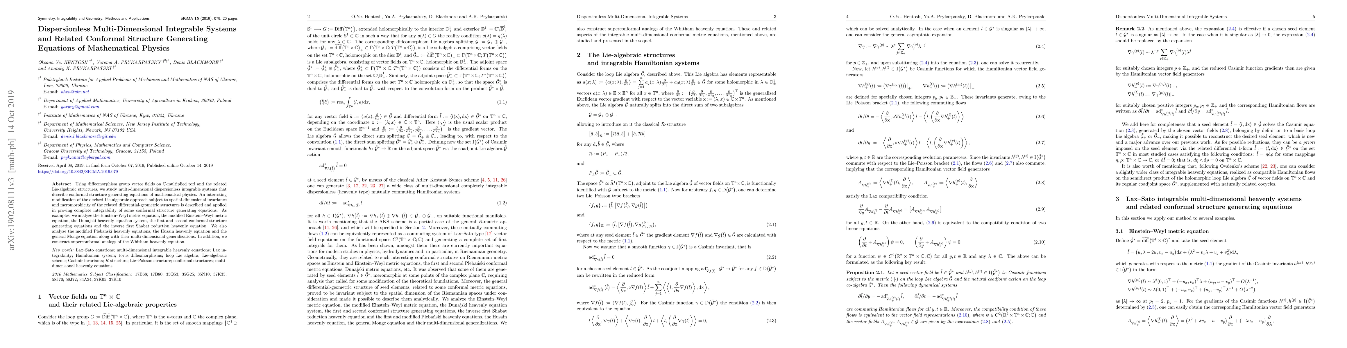 Researchers developed a new approach to study multi-dimensional integrable systems that describe conformal structure generating equations in mathematical physics, focusing on complete integrability of various equations related to Einstein's theory of general relativity.