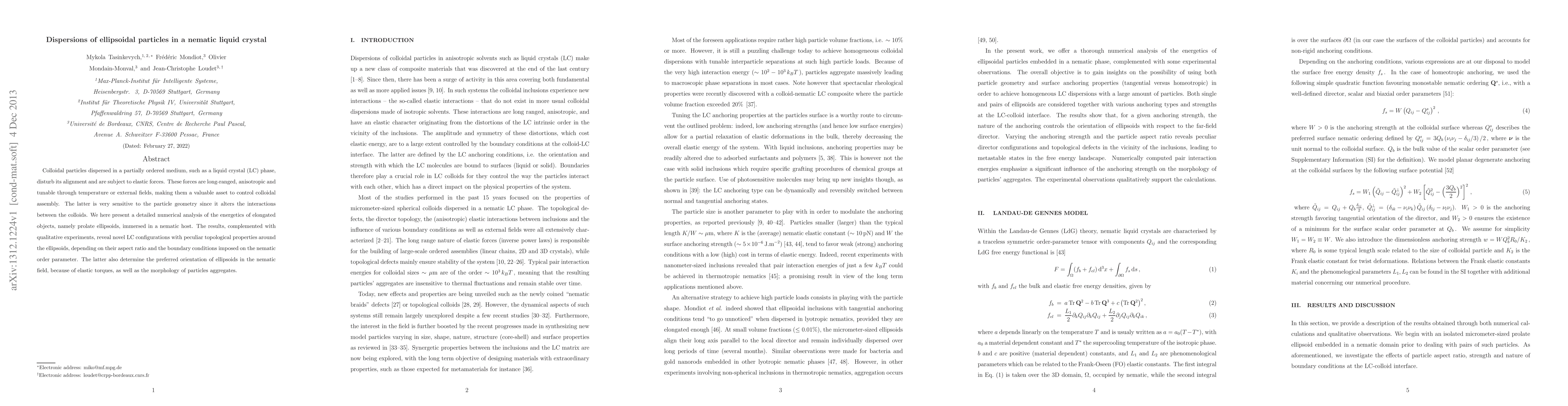 The Landau-deGennes theory was used to compute the total free energy related to the immersion of prolate ellipsoidal particles in an anisotropic liquid crystal.