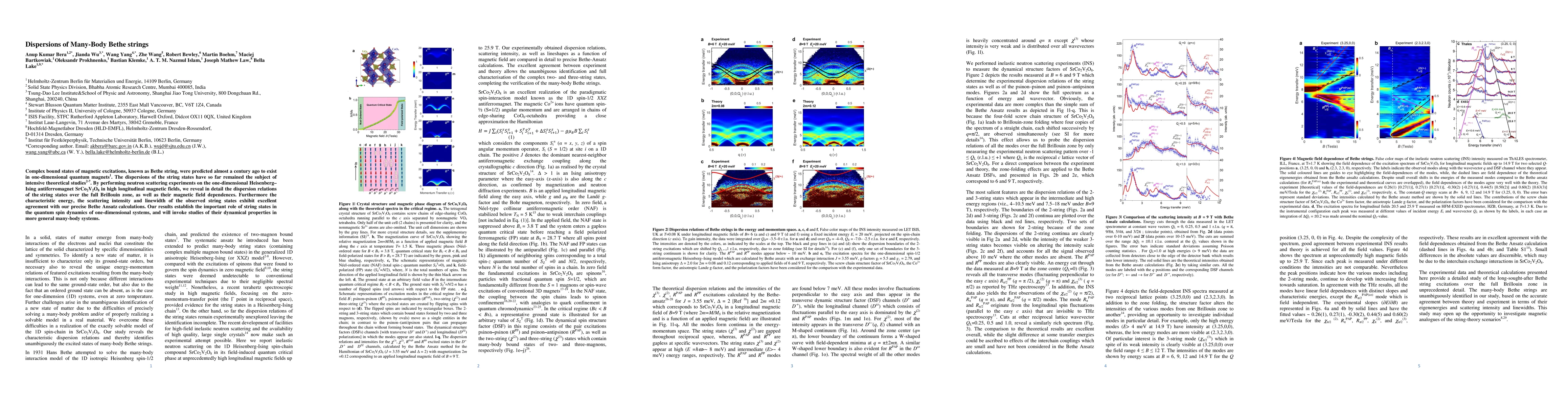 This paper reveals detailed dispersion relations of Bethe strings in SrCo2V2O8 through neutron scattering experiments, showing strong agreement with Bethe Ansatz calculations. The findings underscore the significance of string states in quantum spin dynamics in one-dimensional systems.