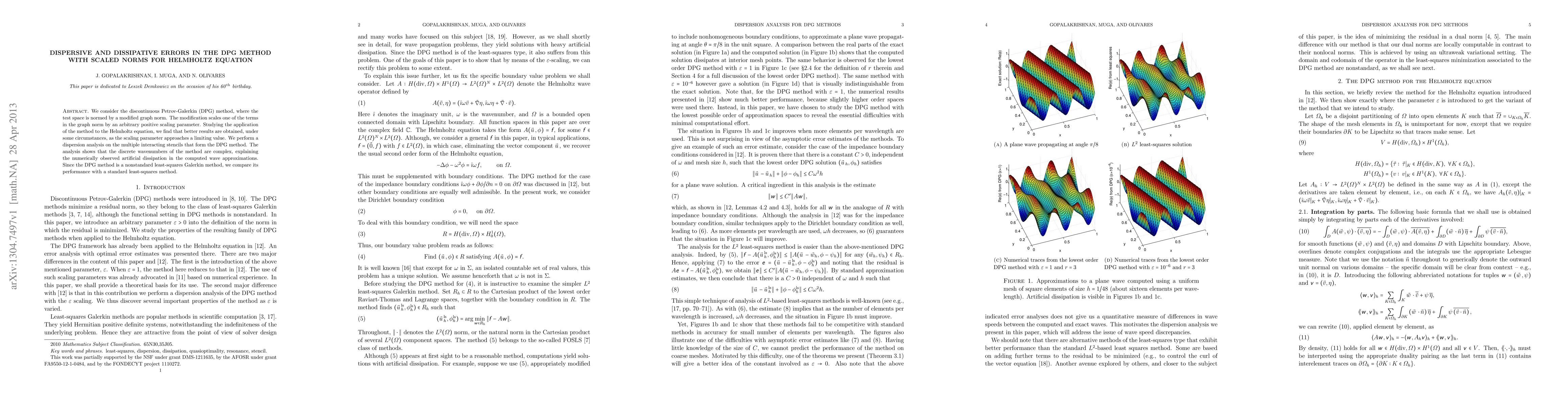 We consider the discontinuous Petrov-Galerkin (DPG) method, wher the test space is normed by a modified graph norm. The modificatio scales one of the terms in the graph norm by an arbitrary positive scaling parameter. Studying the application of the method to the Helmholtz equation, we find that better results are obtained, under some circumstances, as the scaling parameter approaches a limiting value. We perform a dispersion analysis on the multiple interacting stencils that form the DPG method. The analysis shows that the discrete wavenumbers of the method are complex, explaining the numerically observed artificial dissipation in the computed wave approximations. Since the DPG method is a nonstandard least-squares Galerkin method, we compare its performance with a standard least-squares method.