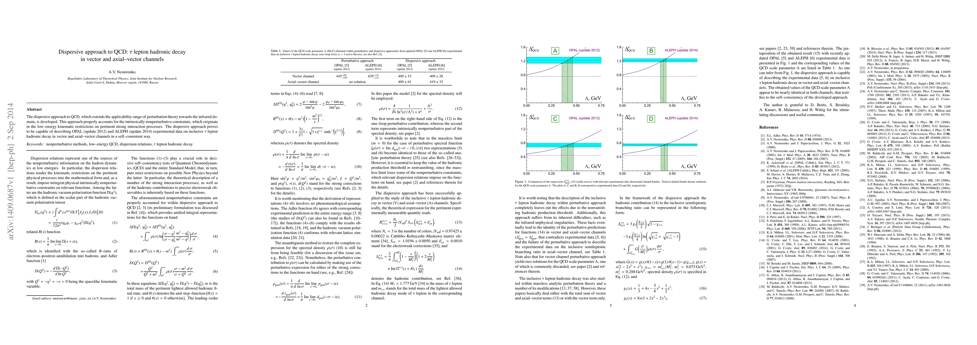 The dispersive approach to QCD effectively extends perturbation theory to the infrared domain, accurately capturing nonperturbative constraints in low-energy strong interactions. It successfully describes experimental data from OPAL and ALEPH on tau lepton hadronic decay in vector and axial-vector channels.