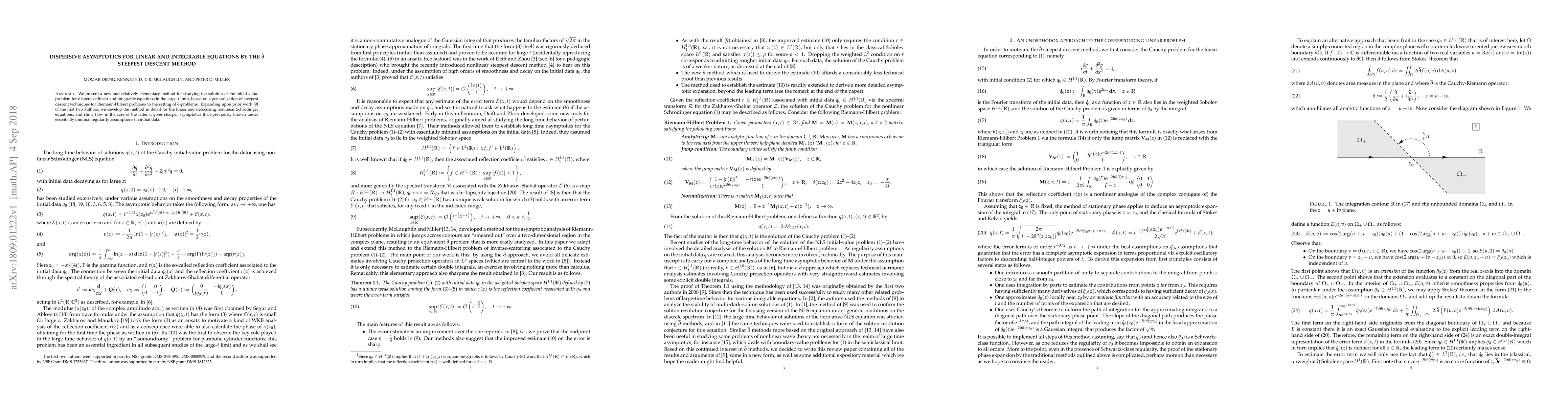 This paper introduces a novel $\overline{\partial}$ steepest descent method for solving the initial-value problem of dispersive linear and integrable equations in the large-$t$ limit, providing sharper asymptotics for the defocusing nonlinear Schrödinger equation compared to previous methods. The method generalizes steepest descent techniques for Riemann-Hilbert problems.