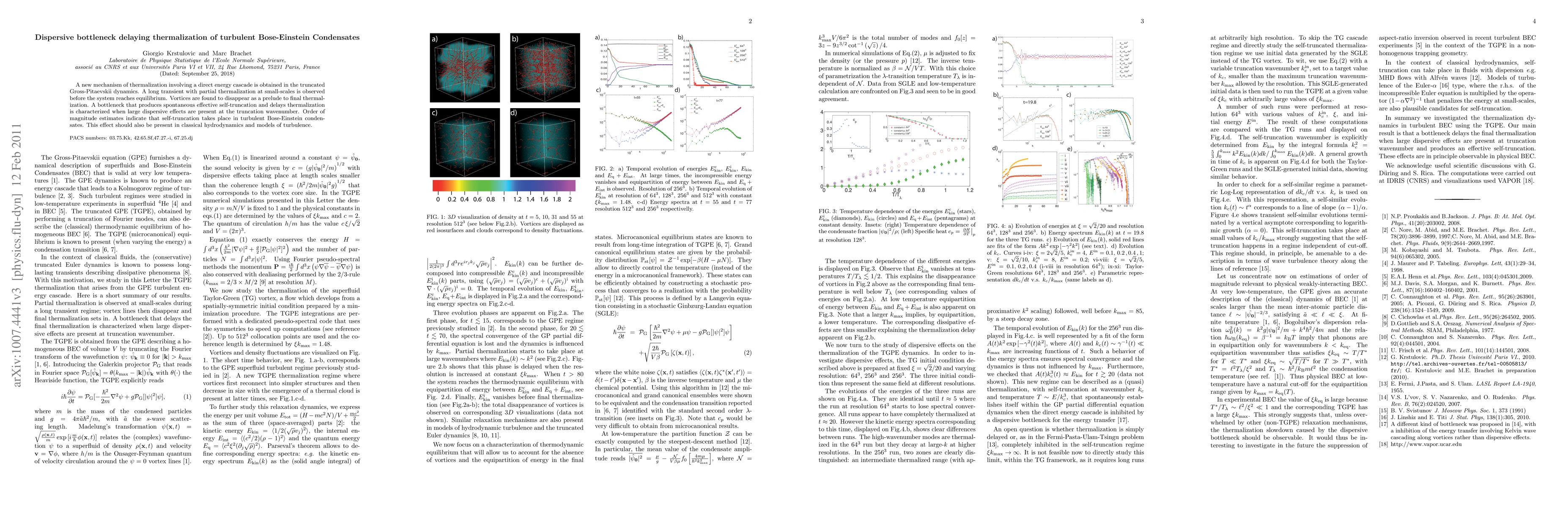 This study reveals a dispersive bottleneck delaying thermalization in turbulent Bose-Einstein condensates, characterized by a transient phase with partial small-scale thermalization before equilibrium. The presence of large dispersive effects at the truncation wavenumber leads to spontaneous effective self-truncation, delaying full thermalization.