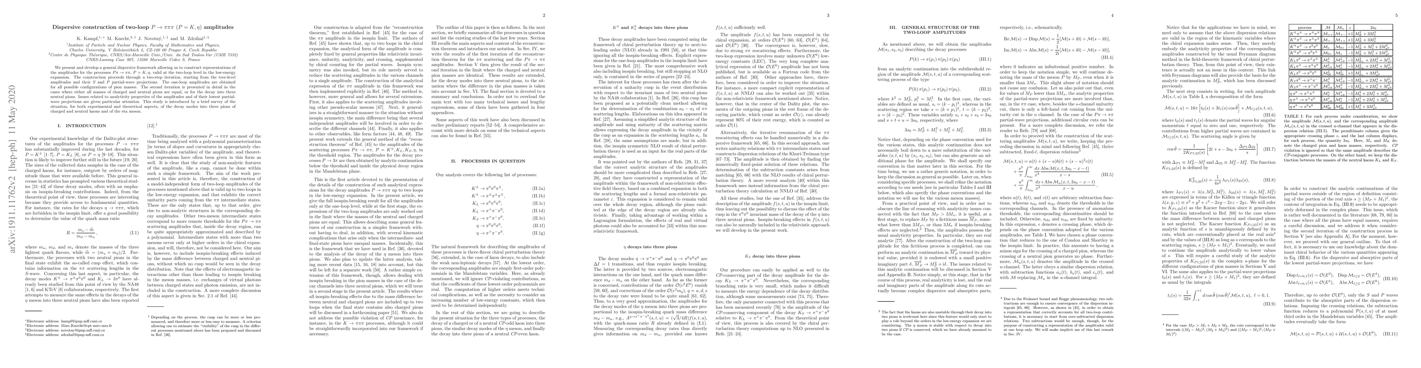 Researchers developed a dispersive framework to construct two-loop amplitudes for kaon decays into three pions, focusing on analyticity properties and addressing experimental and theoretical aspects of the process.