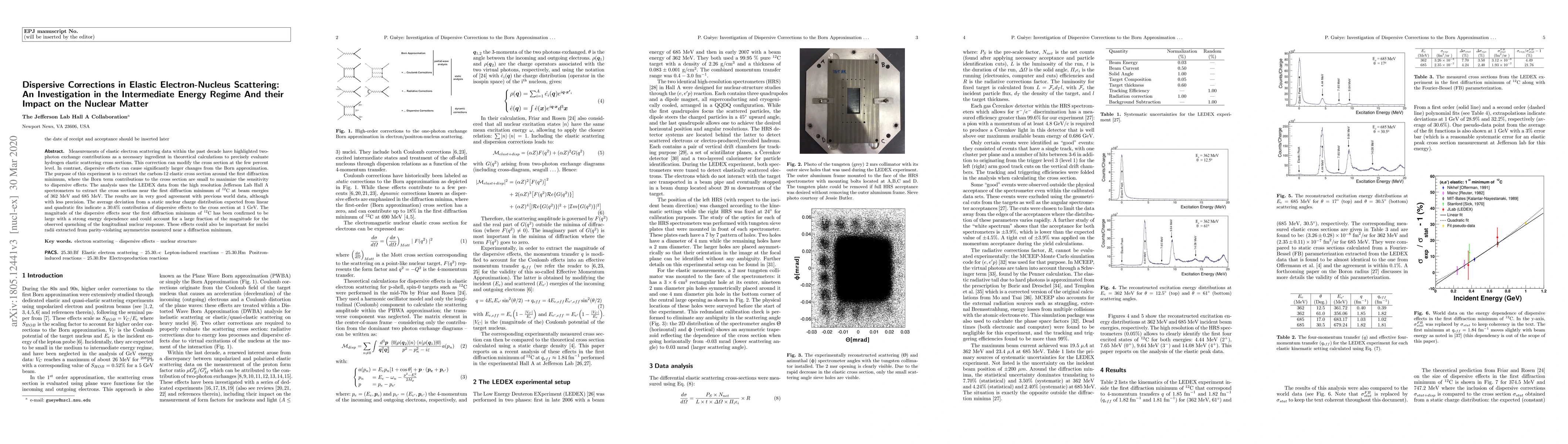 This paper investigates dispersive corrections to the Born approximation in elastic electron-nucleus scattering, focusing on carbon-12 at intermediate energies. The study finds significant dispersive effects, contributing up to 30.6% to the cross section, which could explain the observed quenching of the longitudinal nuclear response and impact nuclear radii measurements.