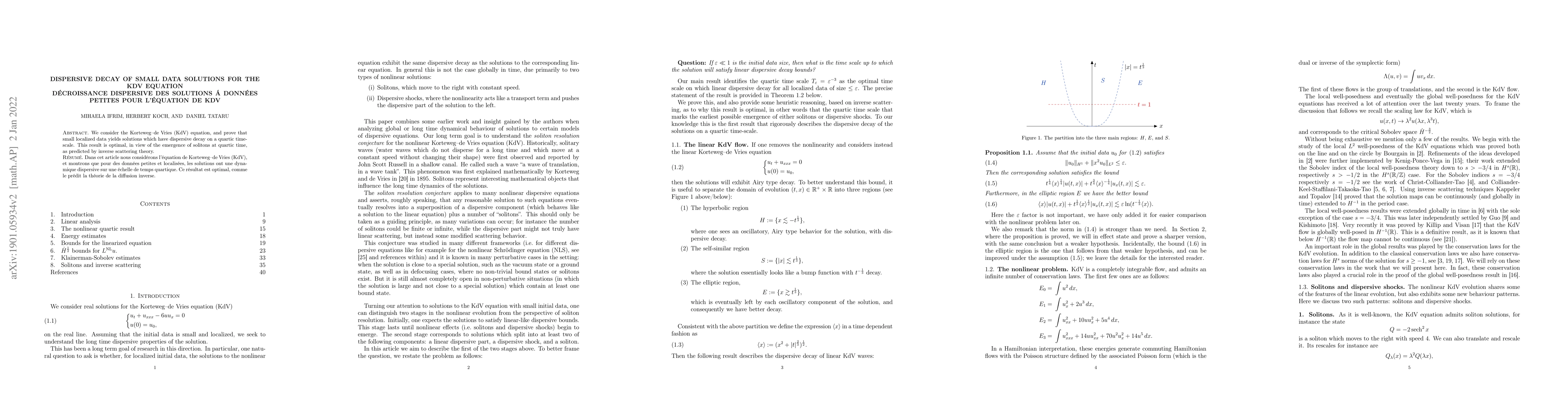 We consider the Korteweg-de Vries (KdV) equation, and prove that small localized data yields solutions which have dispersive decay on a quartic time-scale. This result is optimal, in view of the emergence of solitons at quartic time, as predicted by inverse scattering theory.