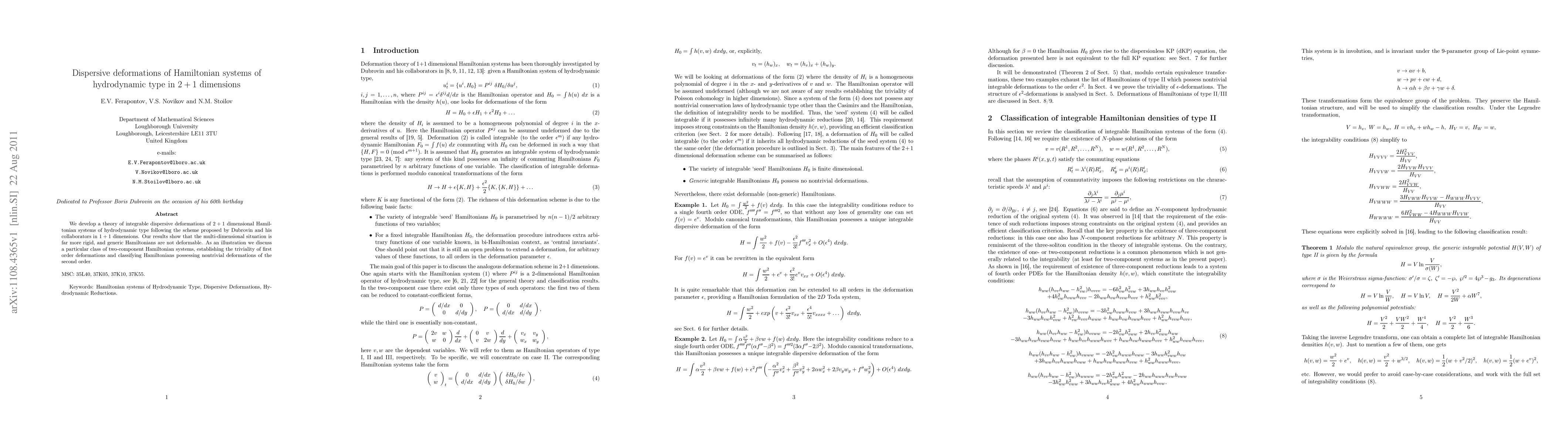 This paper develops a theory for integrable dispersive deformations of 2+1 dimensional hydrodynamic Hamiltonian systems, showing that generic systems are not deformable. It classifies Hamiltonians with nontrivial second-order deformations and illustrates the rigidity of multi-dimensional systems.