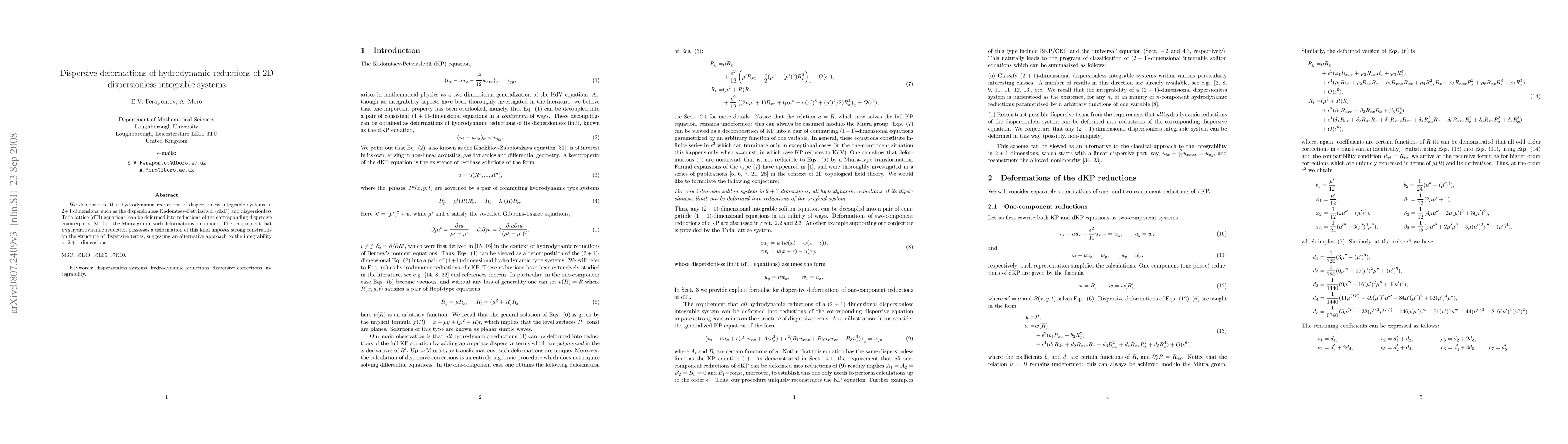 This paper shows that dispersionless integrable systems in 2D can be uniquely deformed into their dispersive counterparts through hydrodynamic reductions, imposing strong constraints on the structure of dispersive terms and suggesting a new approach to integrability in higher dimensions.