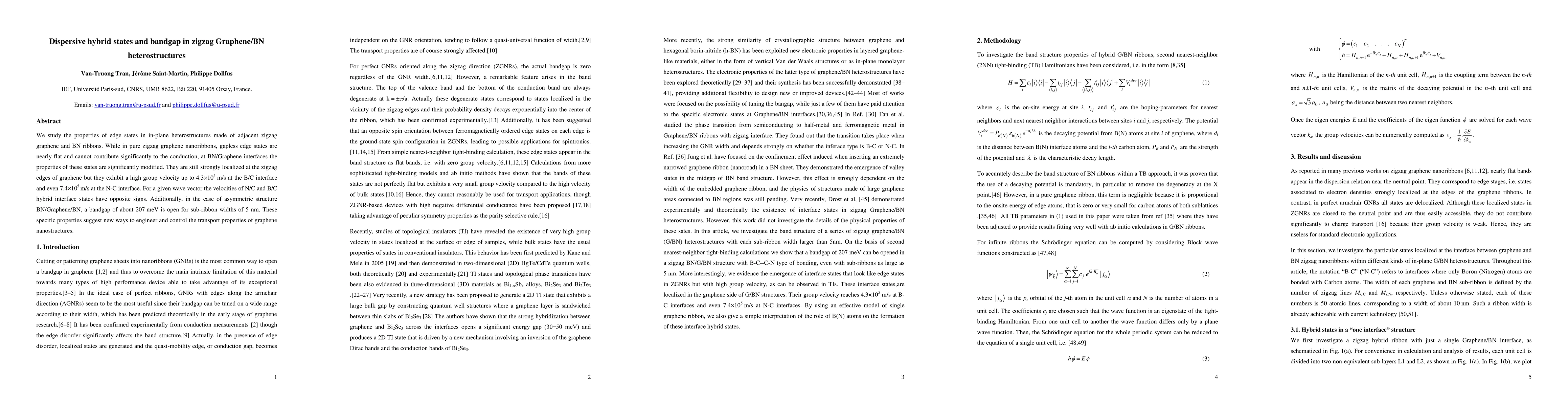 This paper investigates edge states in zigzag graphene/BN heterostructures, revealing that hybrid states at BN/Graphene interfaces exhibit high group velocities and opposite signs for N/C and B/C interfaces. An asymmetric BN/Graphene/BN structure opens a bandgap of 207 meV, suggesting potential for advanced transport property engineering in graphene nanostructures.