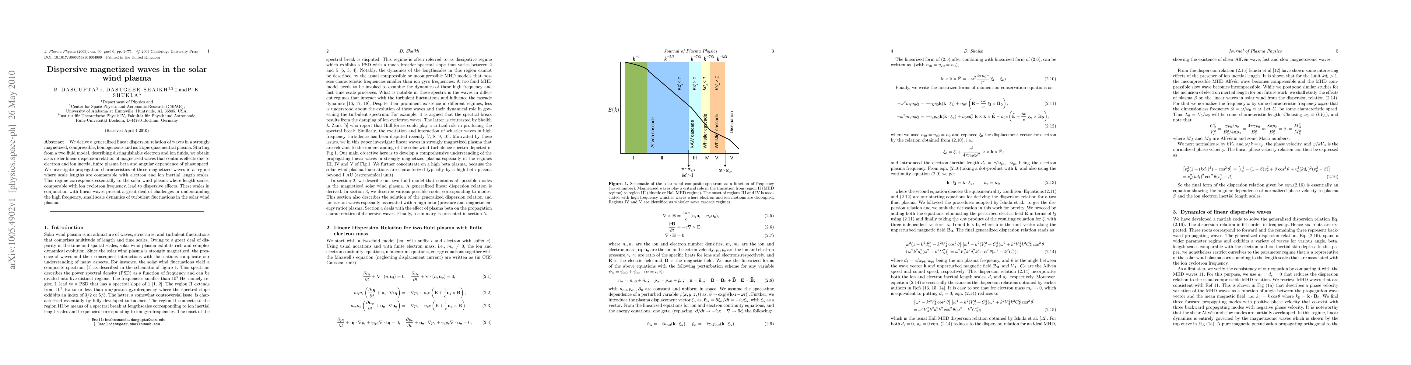 This paper derives a generalized linear dispersion relation for waves in magnetized solar wind plasma, considering electron and ion inertia, plasma beta, and angular dependence. It explores the propagation characteristics of these waves in regimes where scale lengths match inertial length scales, highlighting challenges in understanding small-scale dynamics in the solar wind.