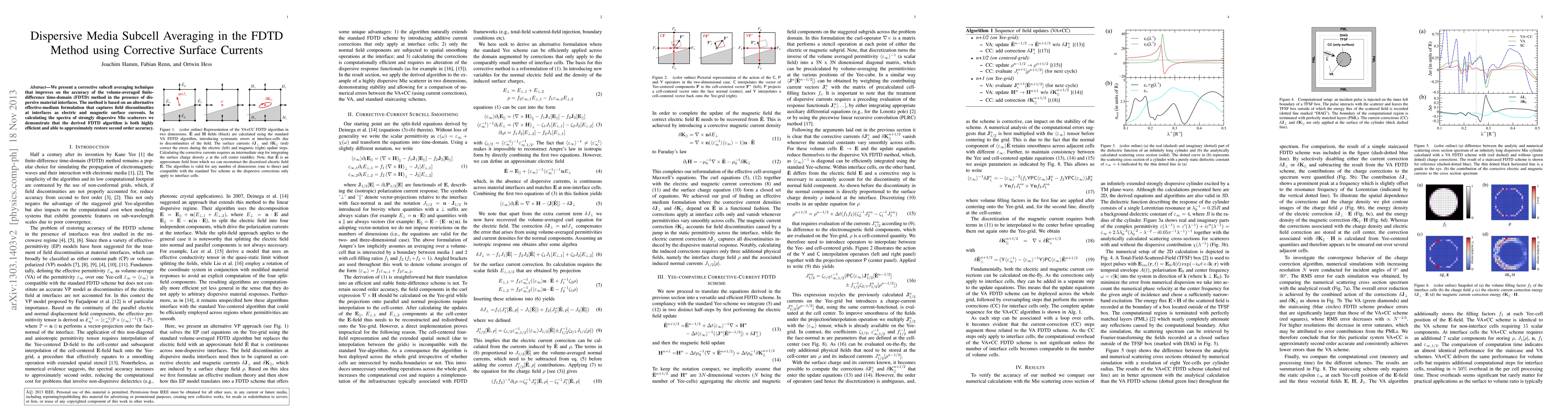 A new method for accurately simulating dispersive material interfaces in FDTD is presented, using corrective surface currents to capture field discontinuities.