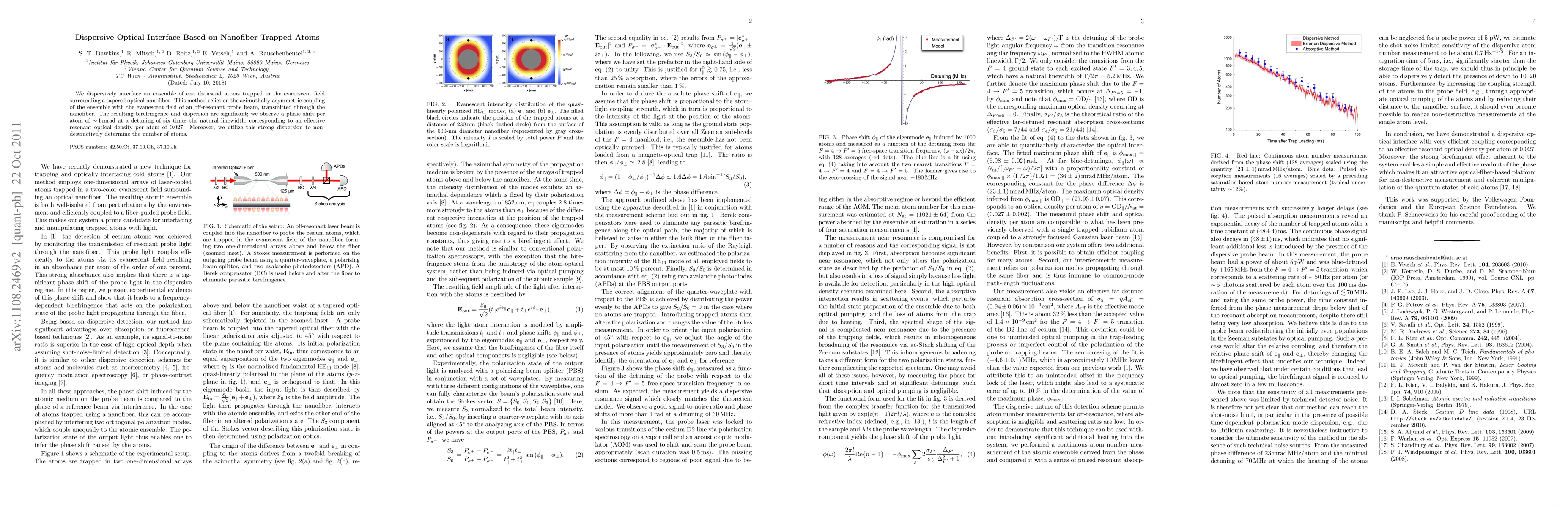 This paper presents a dispersive optical interface using an ensemble of atoms trapped in the evanescent field of a tapered optical nanofiber, achieving significant birefringence and dispersion, enabling non-destructive determination of the atom count. The method results in a phase shift of approximately 1 mrad per atom at a detuning of six times the natural linewidth.