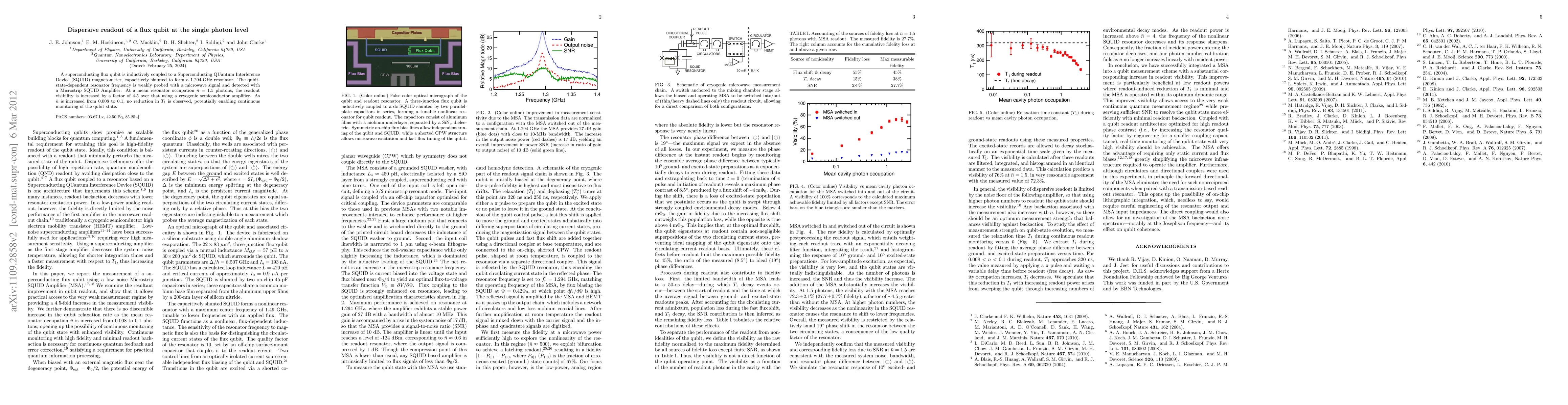 This paper demonstrates dispersive readout of a superconducting flux qubit using a coupled SQUID resonator, achieving a fourfold increase in readout visibility at a mean photon occupation of 1.5. The method maintains qubit coherence, suggesting potential for continuous state monitoring.