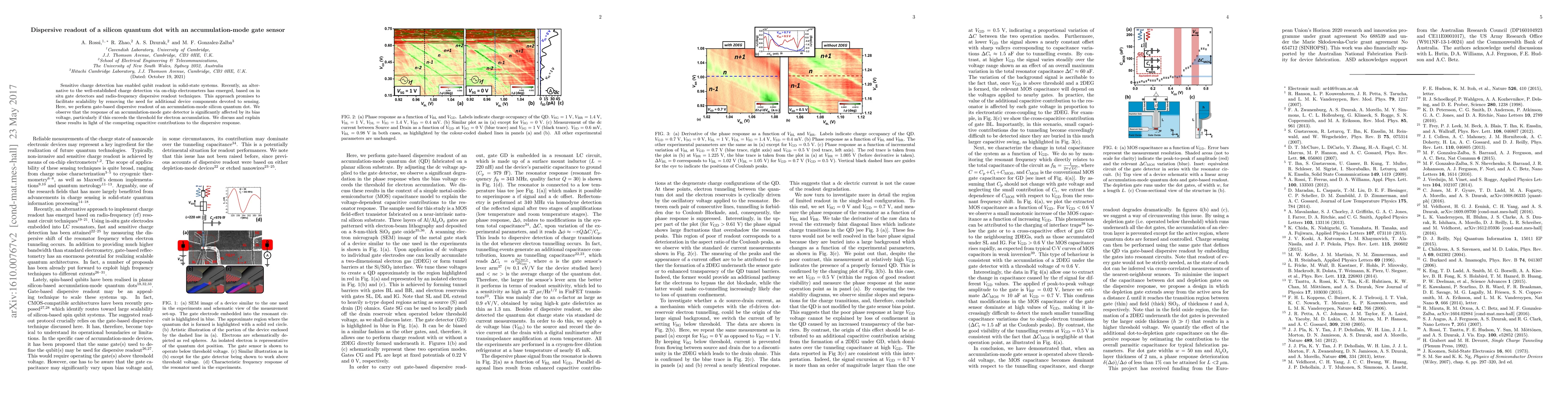 This paper explores gate-based dispersive readout for a silicon quantum dot using an accumulation-mode gate sensor, finding that the detector's response is strongly influenced by its bias voltage, especially when exceeding the electron accumulation threshold, due to competing capacitive effects. The method aims to enhance scalability by eliminating the need for additional sensing components.