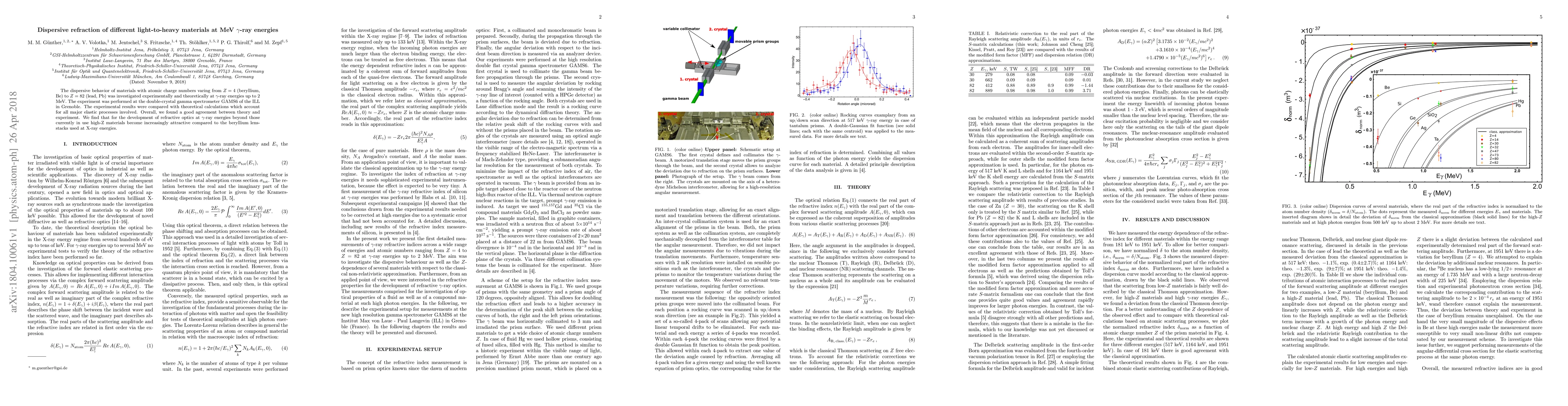 The dispersive behavior of materials with atomic charge numbers varing from $Z = 4$ (beryllium, Be) to $Z = 82$ (lead, Pb) was investigated experimentally and theoretically at $\gamma$-ray energies up to 2 MeV. The experiment was performed at the double-crystal gamma spectrometer GAMS6 of the ILL in Grenoble. The experimental results were compared with theoretical calculations which account for all major elastic processes involved. Overall, we found a good agreement between theory and experiment. We find that for the development of refractive optics at $\gamma$-ray energies beyond those currently in use high-Z materials become increasingly attractive compared to the beryllium lens-stacks used at X-ray energies.