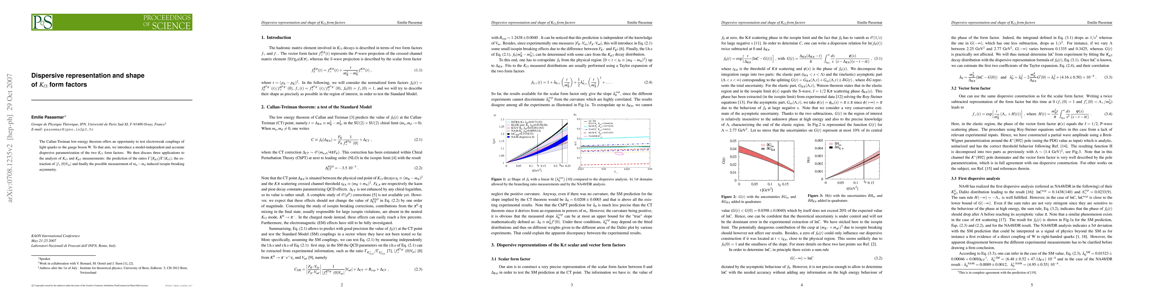 The Callan-Treiman low-energy theorem offers an opportunity to test electroweak couplings of light quarks to the gauge boson W. To that aim, we introduce a model-independent and accurate dispersive parametrization of the two K_{l3} form factors. We then discuss three applications to the analysis of K_{e3} and K_{mu3} measurements: the prediction of the ratios Gamma(K_{mu3})/Gamma(K_{e3}), the extraction of |f_+(0)V_{us}| and finally the possible measurement of m_u - m_d induced isospin breaking asymmetry.