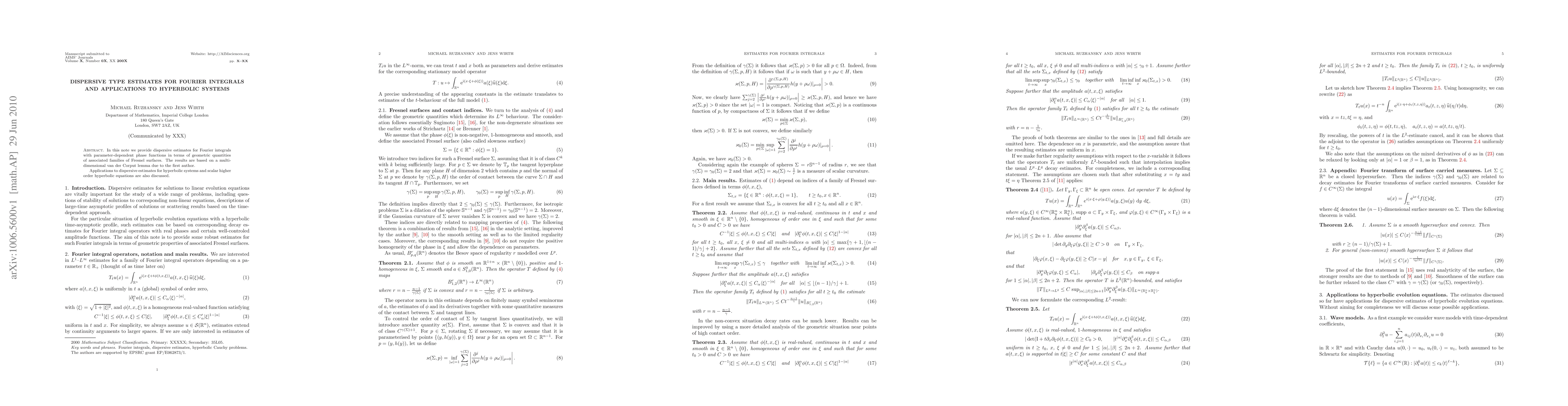 This paper provides dispersive estimates for Fourier integrals using a multi-dimensional van der Corput lemma, focusing on parameter-dependent phase functions and associated Fresnel surfaces. The findings are applied to derive dispersive estimates for hyperbolic systems and scalar higher-order hyperbolic equations.