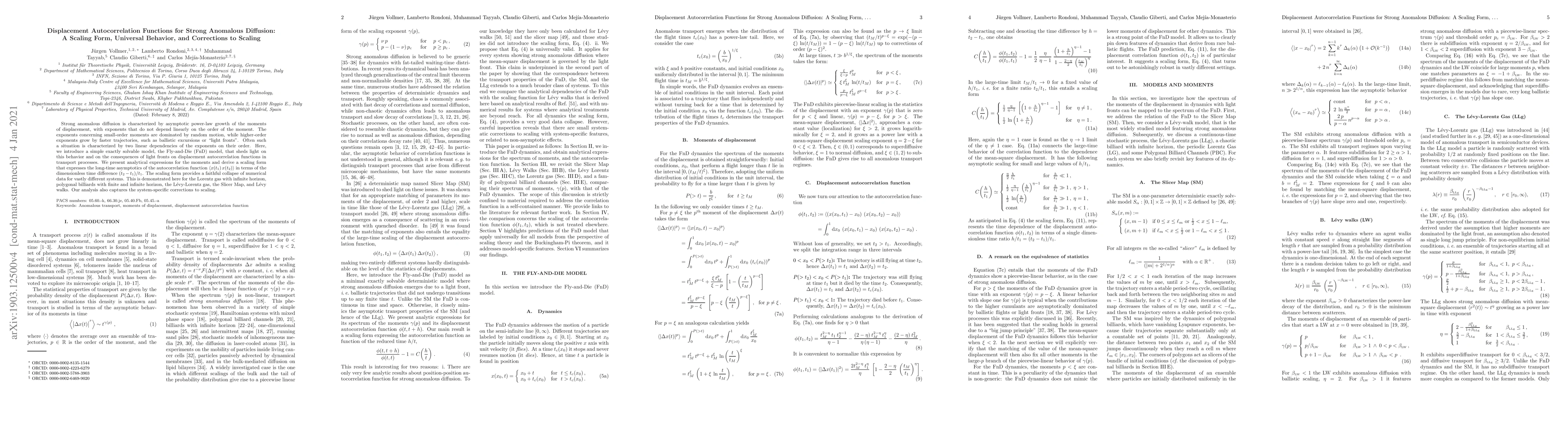 This paper investigates strong anomalous diffusion through the Fly-and-Die (FnD) model, presenting analytical expressions for displacement autocorrelation functions. It introduces a scaling form that accurately collapses data from various systems, demonstrating universal behavior and capturing system-specific corrections.
