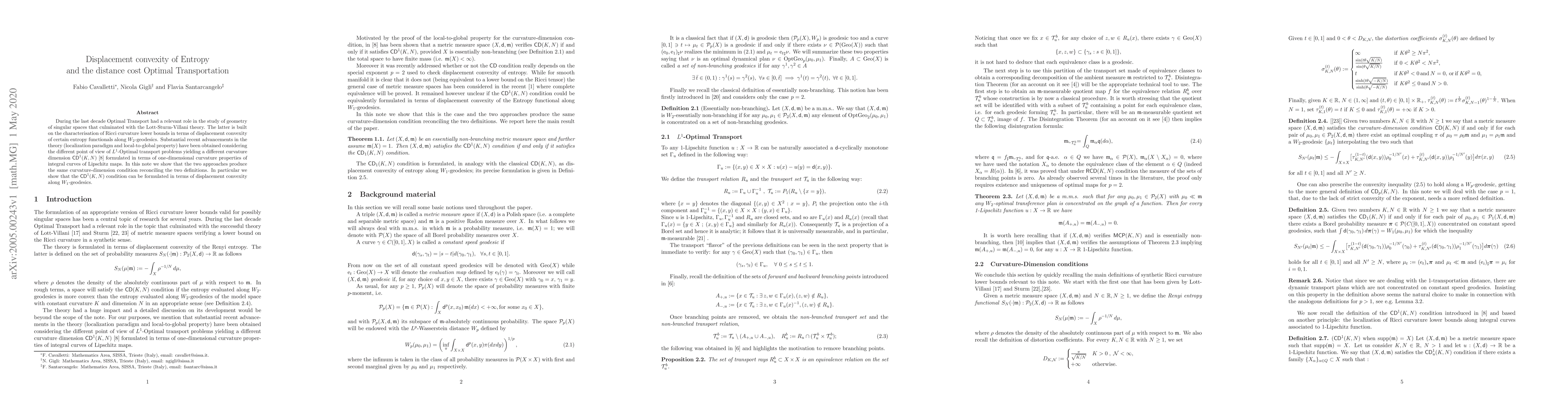 This paper reconciles two approaches to Optimal Transport theory, showing that the displacement convexity of entropy functionals along $W_{2}$-geodesics and the $\mathsf{CD}^{1}(K,N)$ condition formulated via $L^1$-Optimal transport both yield the same curvature-dimension condition.