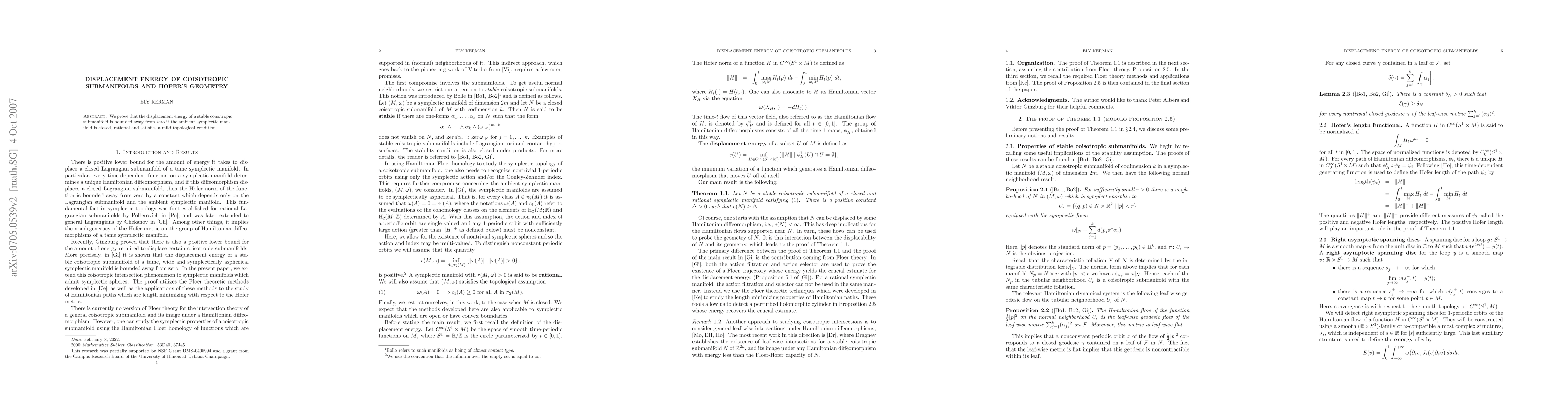 Summary: This paper proves that the displacement energy of stable coisotropic submanifolds in closed, rational symplectic manifolds is strictly positive, provided the manifold meets a specific topological condition. This result contributes to Hofer's geometry by establishing a lower bound for the displacement energy.